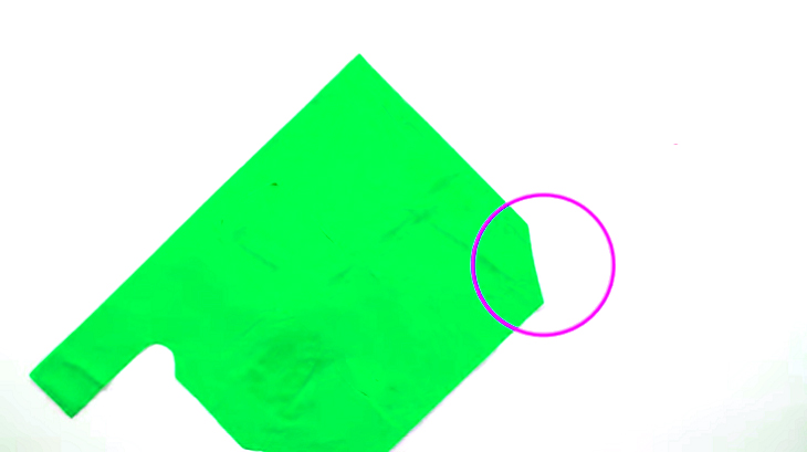 Bước 1: Cắt một đường chéo ở đáy túi ni lông 1 góc khoảng 5cm.