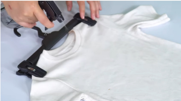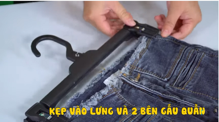 Bước 1: Sử dụng móc quần áo kẹp vào lưng và hai bên gấu quần.