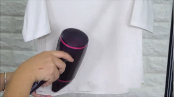 Bước 2: Khởi động máy sấy tóc và sấy liên tục lên quần áo cho đến khi nó thẳng ra.